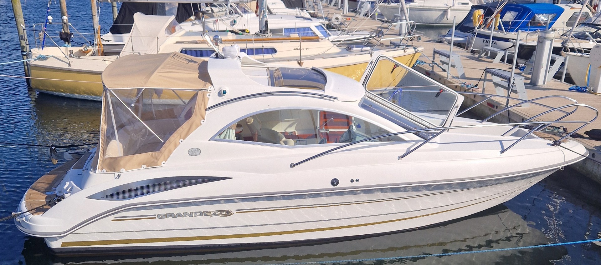 Yderst velholdt Grandezza 23 OC (23 Fod) årg. 2007 fra det finske værft der også laver Finnmaster, Kvalitet og luksus overalt. Godt cockpit med heldækkende Agterkaleche. Stor sofagruppe med bordløsning og 4 sovepladser. Båden fremstår i pæn og god stand og den står opbevaret indendørs om vinteren.